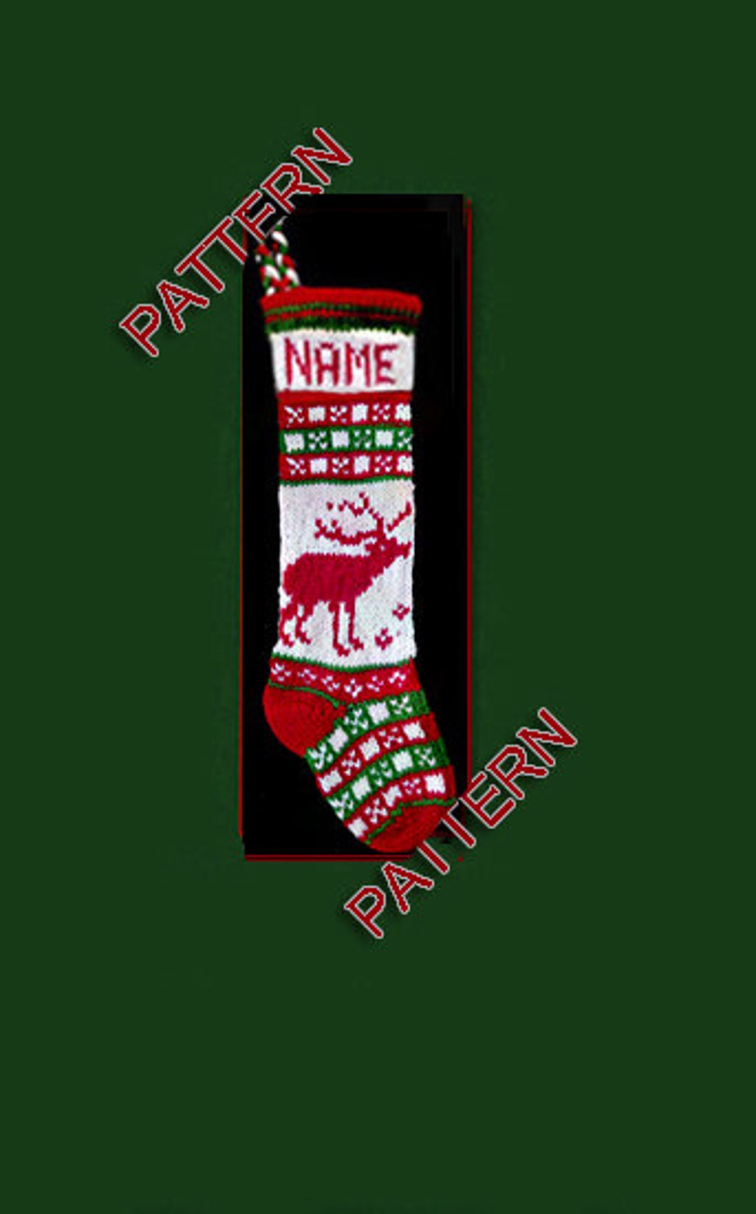 Hand Knit Christmas Stocking Pattern Only Elk And Etsy